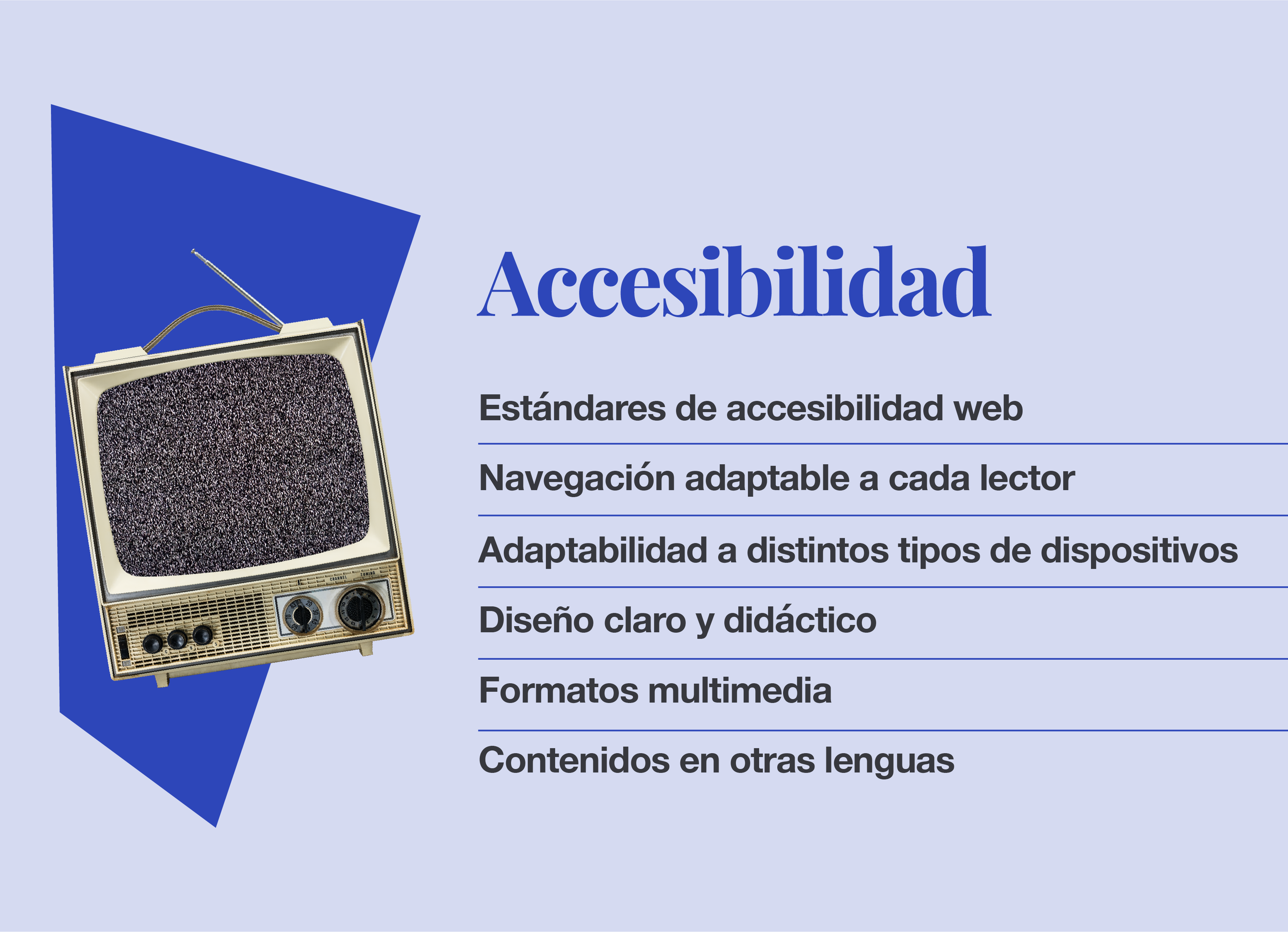 Todos nuestros sitios cumplen con estándares de accesibilidad para facilitar la navegación de personas con distintas capacidades. Nos esforzamos continuamente por innovar formatos y estilos en nuestros contenidos, con el fin de garantizar el acceso a cada vez más lectores.