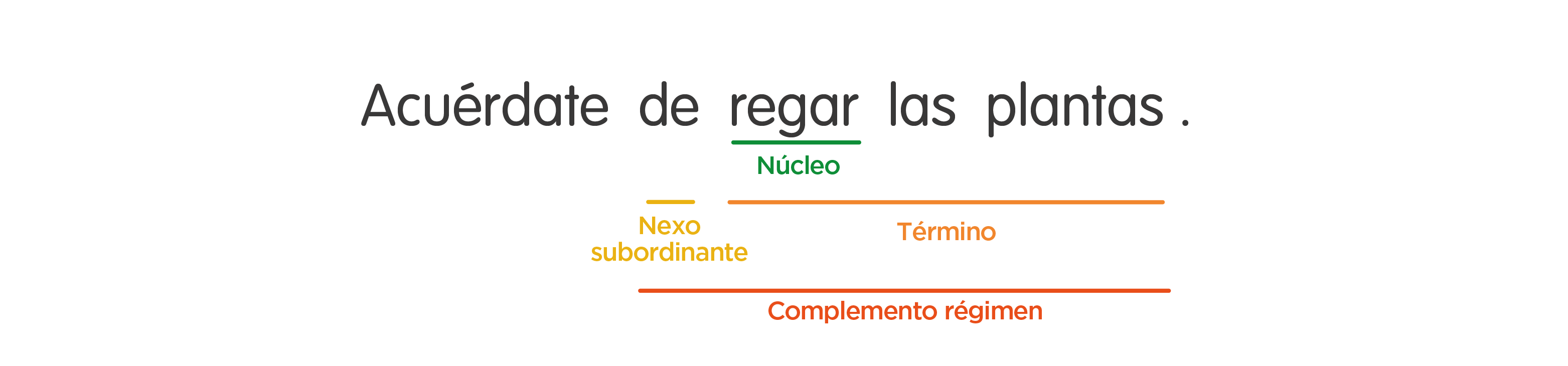 - Término de complemento régimen. Por ejemplo: Acuérdate de regar las plantas.