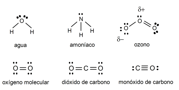 - Ozono (O3). Es una sustancia muy presente en la parte elevada de la atmósfera (la capa de ozono), cuyas condiciones especiales le permiten existir, pues normalmente sus vínculos decaen y recuperan la forma diatómica (O2). Se emplea para purificar agua, pero en grandes cantidades puede resultar irritante y ligeramente tóxico.