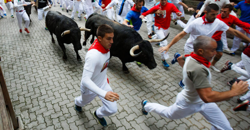 Los sanfermines es una tradición popular española practicada en Pamplona y Navarra durante las fiestas que rinden culto a San Fermín. Allí se lleva a cabo “el encierro”, un recorrido que algunos valientes del poblado realizan hasta la plaza central de la ciudad, durante el cual son perseguidos por varios toros embravecidos.
