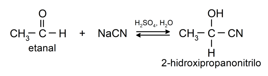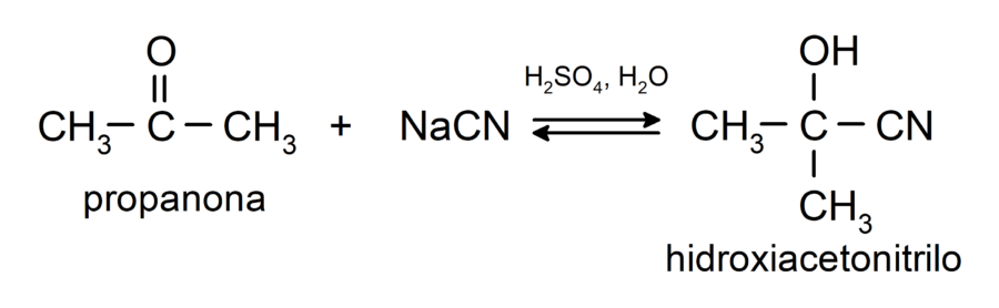 - Adición de ácido cianhídrico para formar cianhidrinas o cianohidrinas.