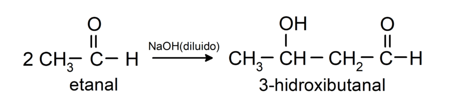 - Reacción de condensación del etanal en presencia de NaOH diluido.