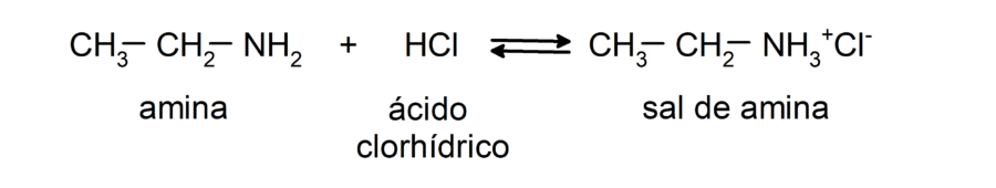 - Presentan reacciones neutralización con ácidos en las que se forman sales de aminas. Por ejemplo:
