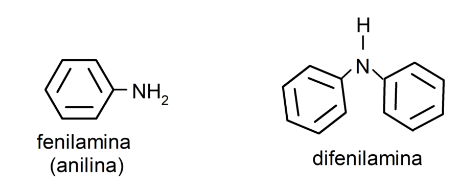 - Aminas aromáticas. Presentan sustituyentes arilo. Por ejemplo: fenilamina (anilina) y difenilamina.