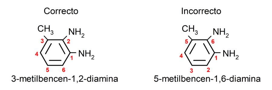 Si la cadena carbonada contiene varios grupos amino, se eligen en la posición que ocupen en la menor combinación de la numeración de sus posiciones. Además, se coloca el nombre del alcano, alqueno o alquino correspondiente, seguido del término que indica la cantidad de grupos amino, seguido del sufijo “amina”.