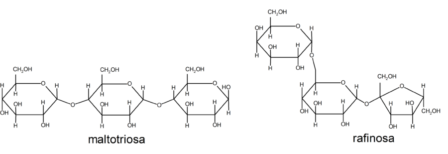 Los trisacáridos son azúcares formados por tres unidades de monómero. Por ejemplo: la maltotriosa y la rafinosa.