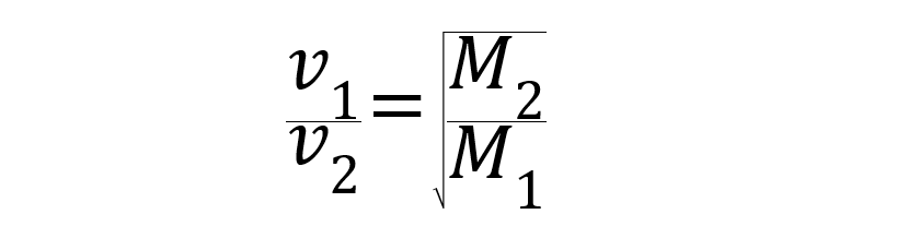 Siendo v1 y v2 las velocidades de los gases 1 y 2 expresadas en metros por segundo (m/s), y M1 y M2 las masas molares de los gases 1 y 2 expresadas en kilogramos por mol (kg/mol).